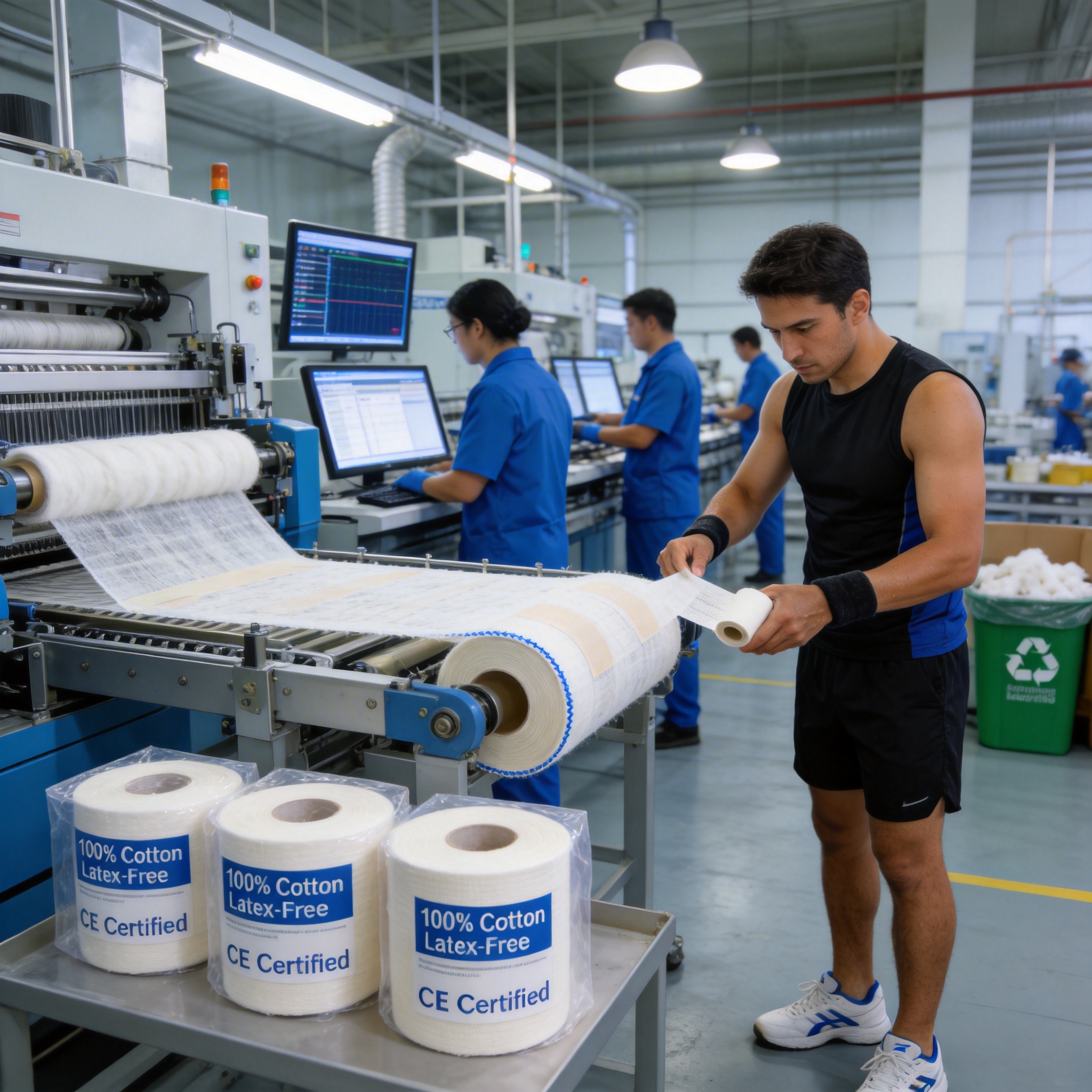 The performance and safety of any medical or sports product depend heavily on its manufacturing processes. This Cotton EAB Elastic Adhesive Sports Bandage is produced using state-of-the-art techniques and strict quality control protocols that meet global standards. Below is an overview of the key manufacturing practices: