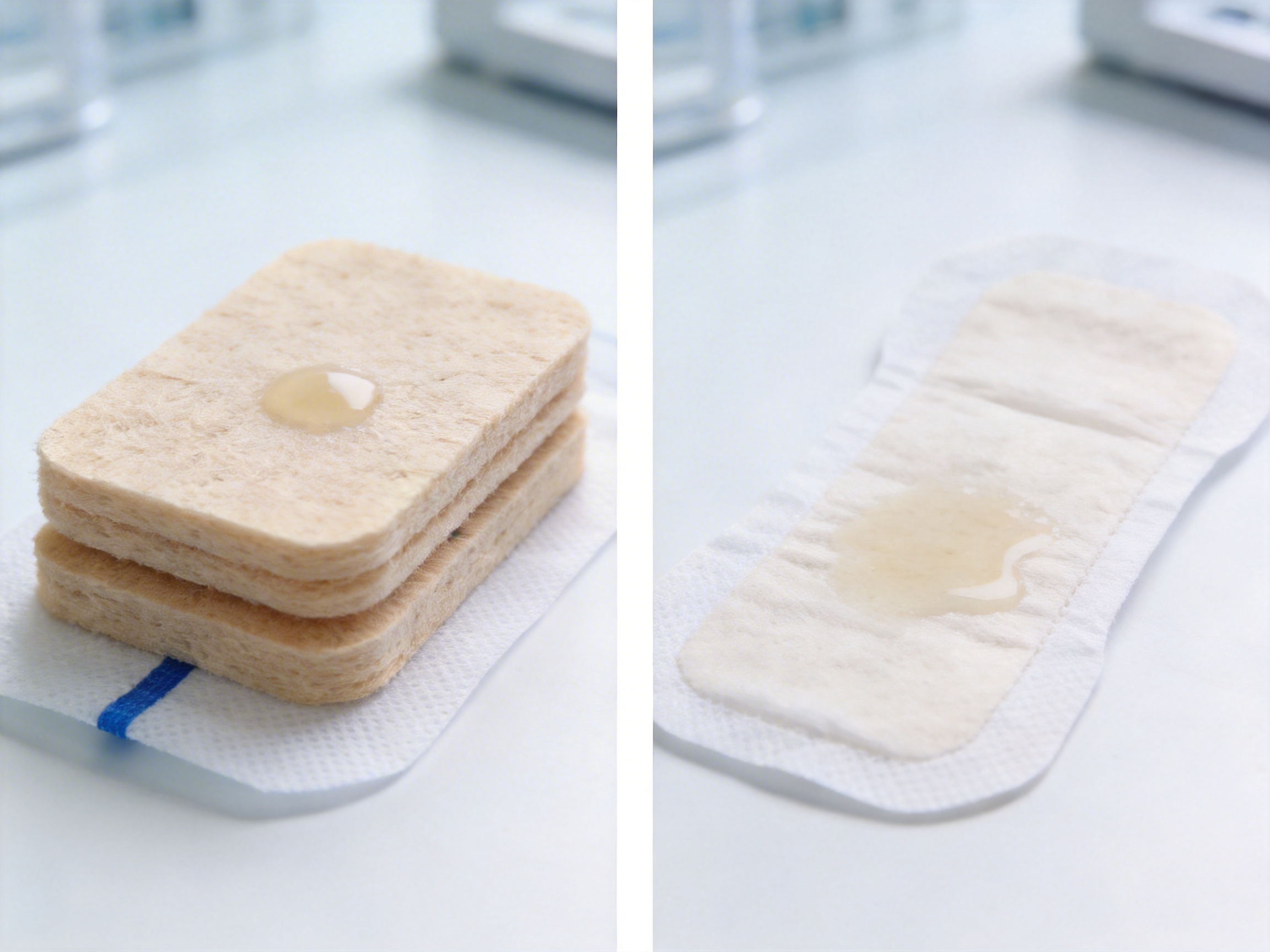A2: Unlike standard gauze: - They have higher absorbency (25x their weight vs. 10-15x for gauze). - They are non-adherent (prevent sticking to the wound bed). - They have an orientation thread (to avoid application errors). - They have a breathable SMS back sheet (reduces maceration).