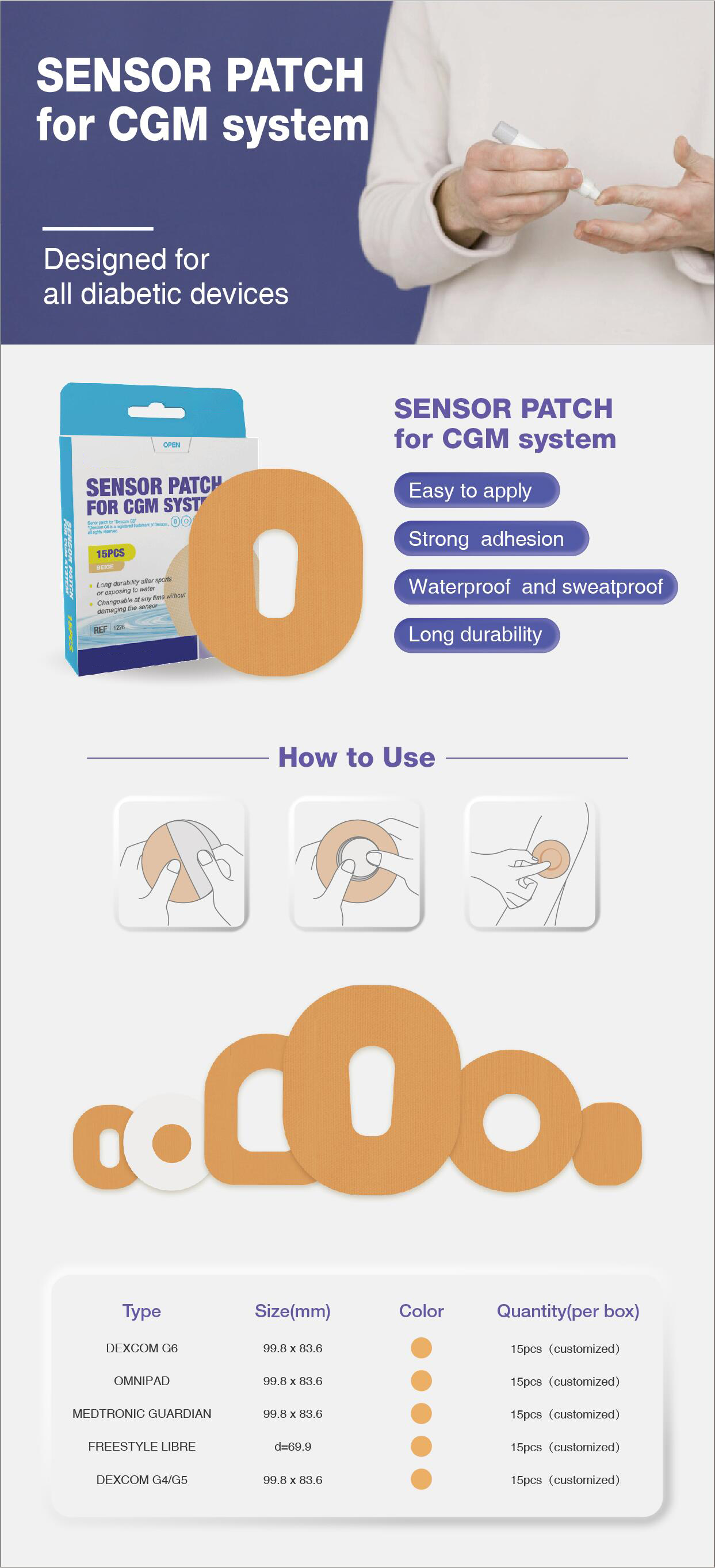 As a professional medical adhesive patch manufacturer, we deliver reliable, waterproof, and customizable Dexcom-compatible CGM Sensor Fixation Patches (also known as Sensor Fixation Plasters, Medical Fixation Dressings, or Retention Patches) for diabetes care brands, pharmacy chains, and international OEM distributors worldwide.