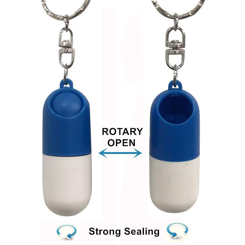 The mini pill holder with key ring fits in your pocket, purse and bag, can also be clipped easily to handbag, key chain, belt loop, zipper handle and more.